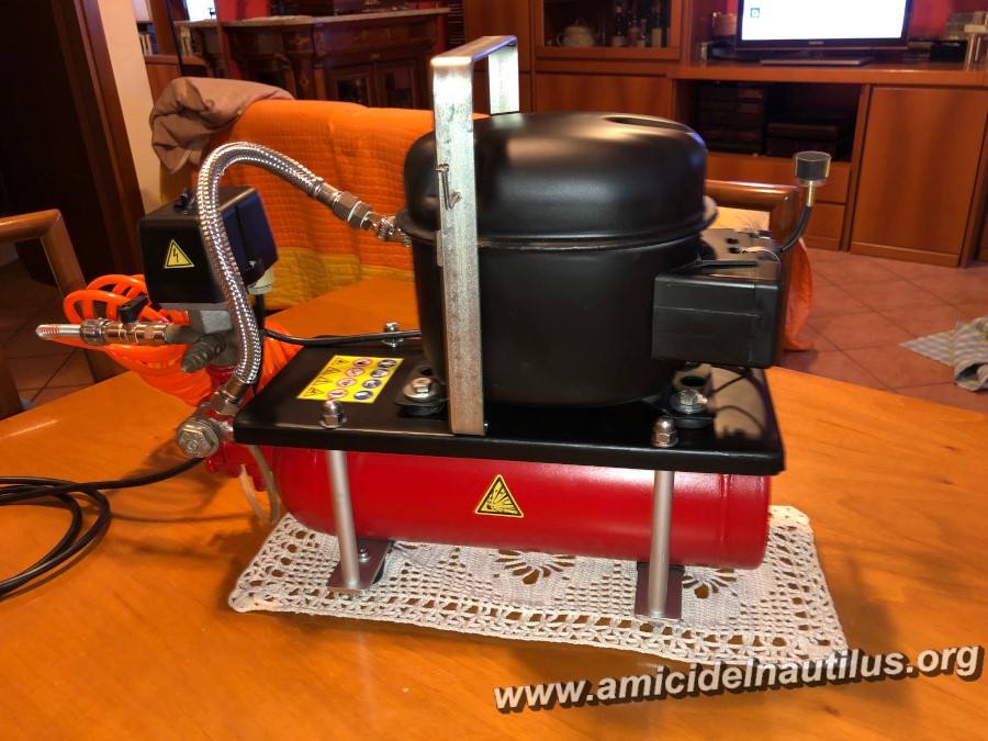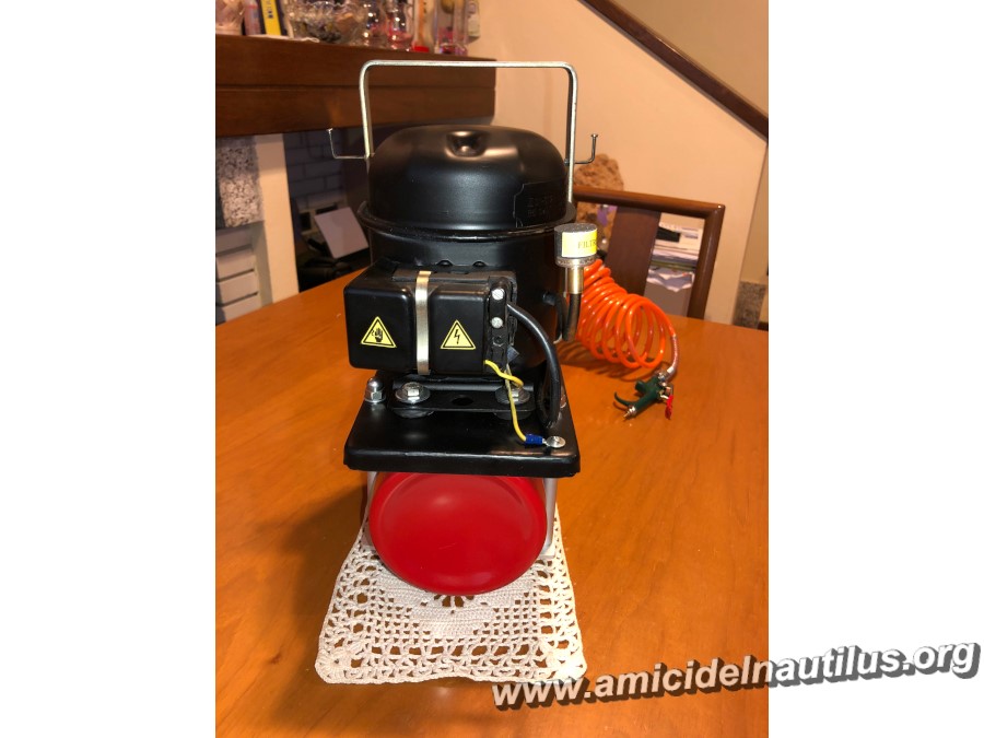 Il problema di ogni modellista che pratica il suo hobby di sera, anche tarda, è quello di accendere il copressore per qualsiasi tipo di utilizzo, a volte qualche vicino di casa non gradisce essere disturbato dal rumore chiaramente fastidioso dei normalissimi compressori, ed allora i casi sono due o non lavorare di sera o comperare un nuovo compressore silenziato, ma nel mio caso ho optato per la terza soluzione, costruirne uno con il motore di un vecchio frigorifero ed un piccolo serbatorio d’aria mediante l’utilizzo di un vecchio estintore scarico, la fortuna è stata anche quella di trovare un pressostato usato ed ecco che con un pò di pazienza e qualche sbombolettata è nato un compressore silenziosissimo che non dà fastidio ai vicini ma soprattutto a mia moglie.